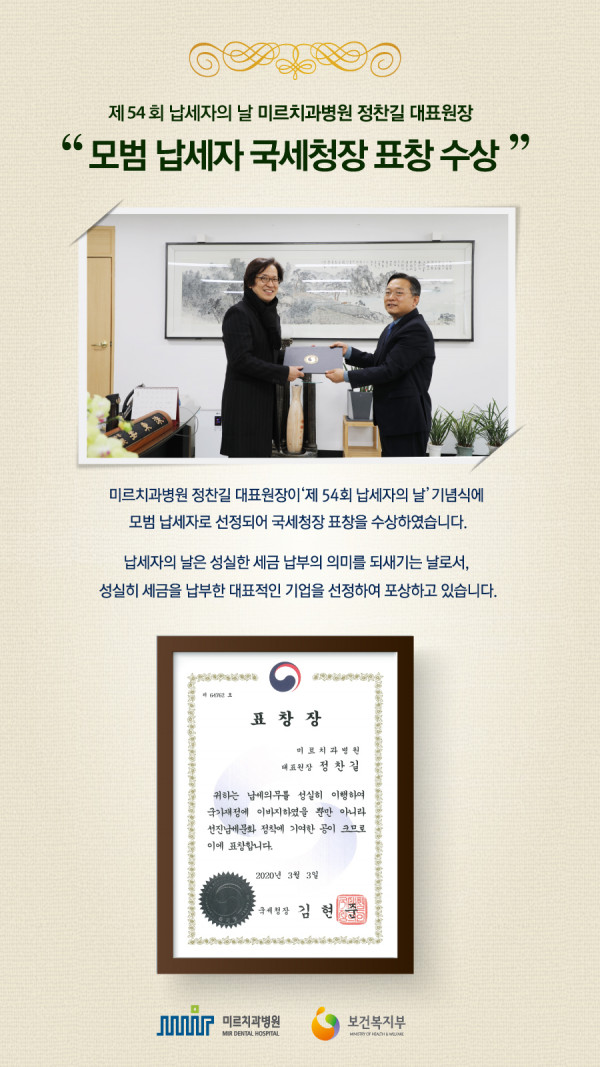 정찬길대표원장 보건복지부장관 표창 수상