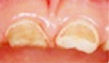 위 앞니와 아래 어금니가 급속하게 썩는 것이 특징입니다.