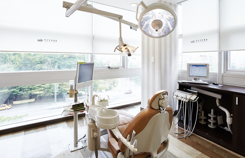 미르치과병원의 인테리어는 환자의 편안함과 안전한 진료 환경을 최우선으로 고려하여