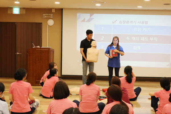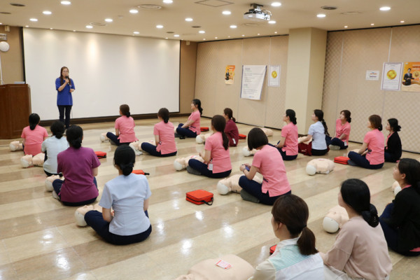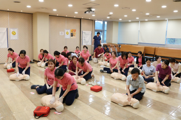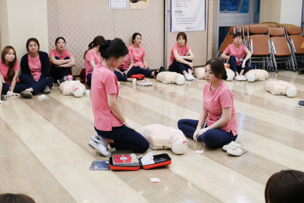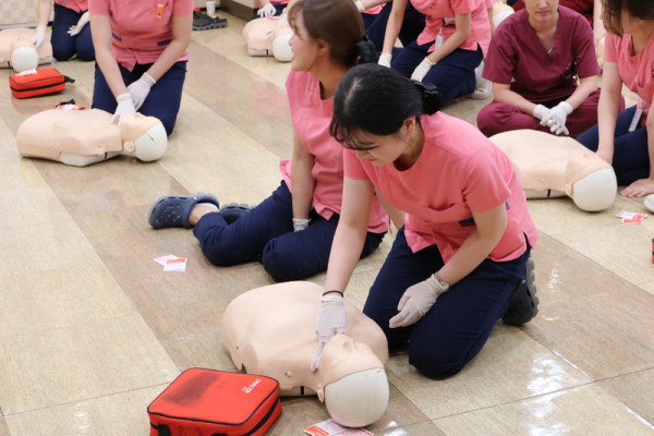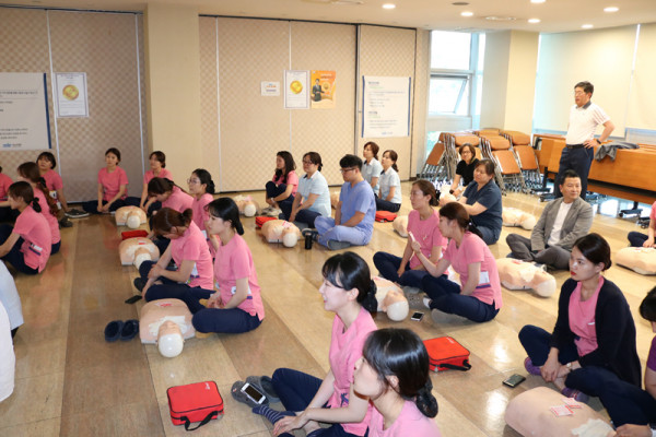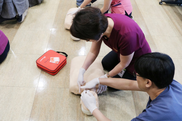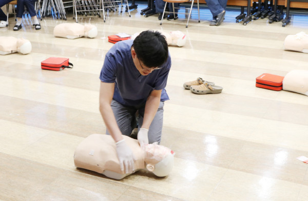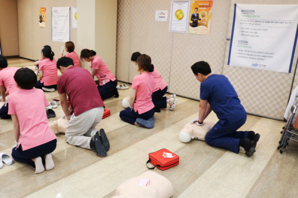 심폐소생술의 필요성과 방법을 배우고 실제 심폐 소생술 훈련 후 모의훈련 과정을 통해