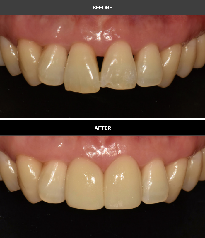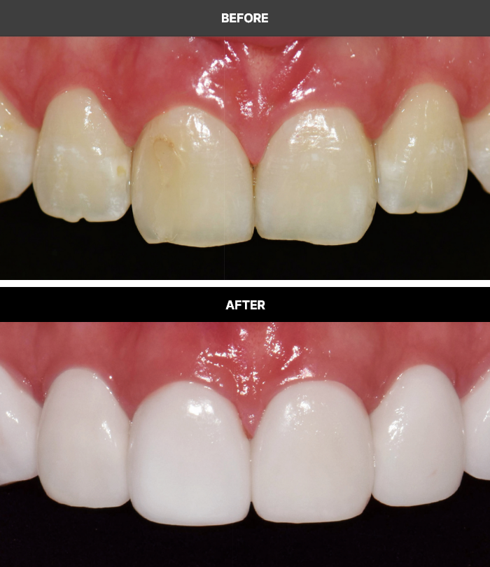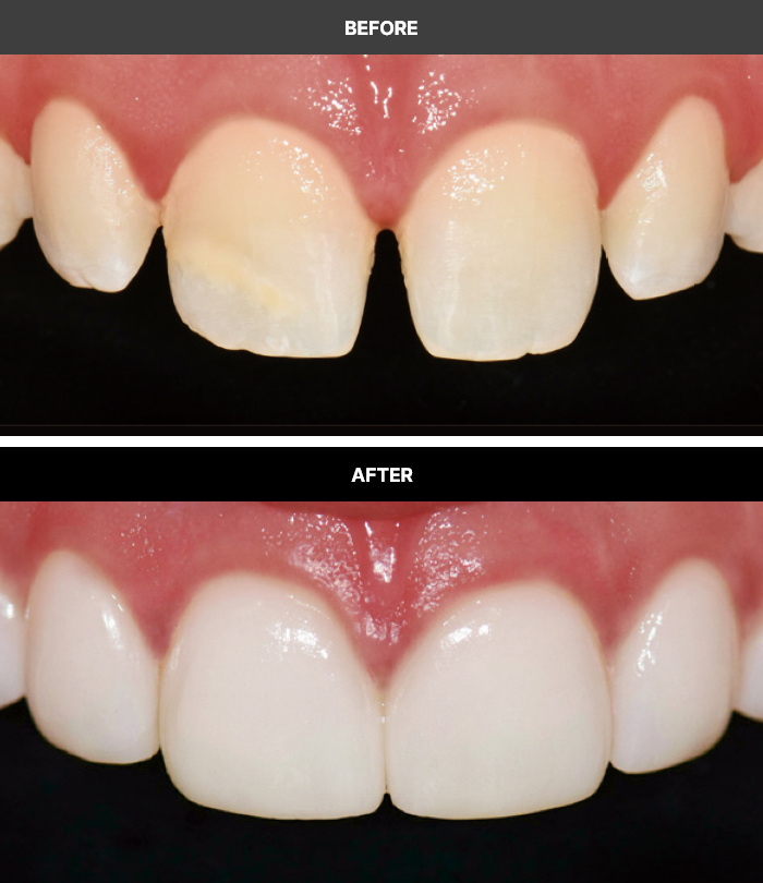 외부 충격으로 손상된 치아를블랙 트라이앵글